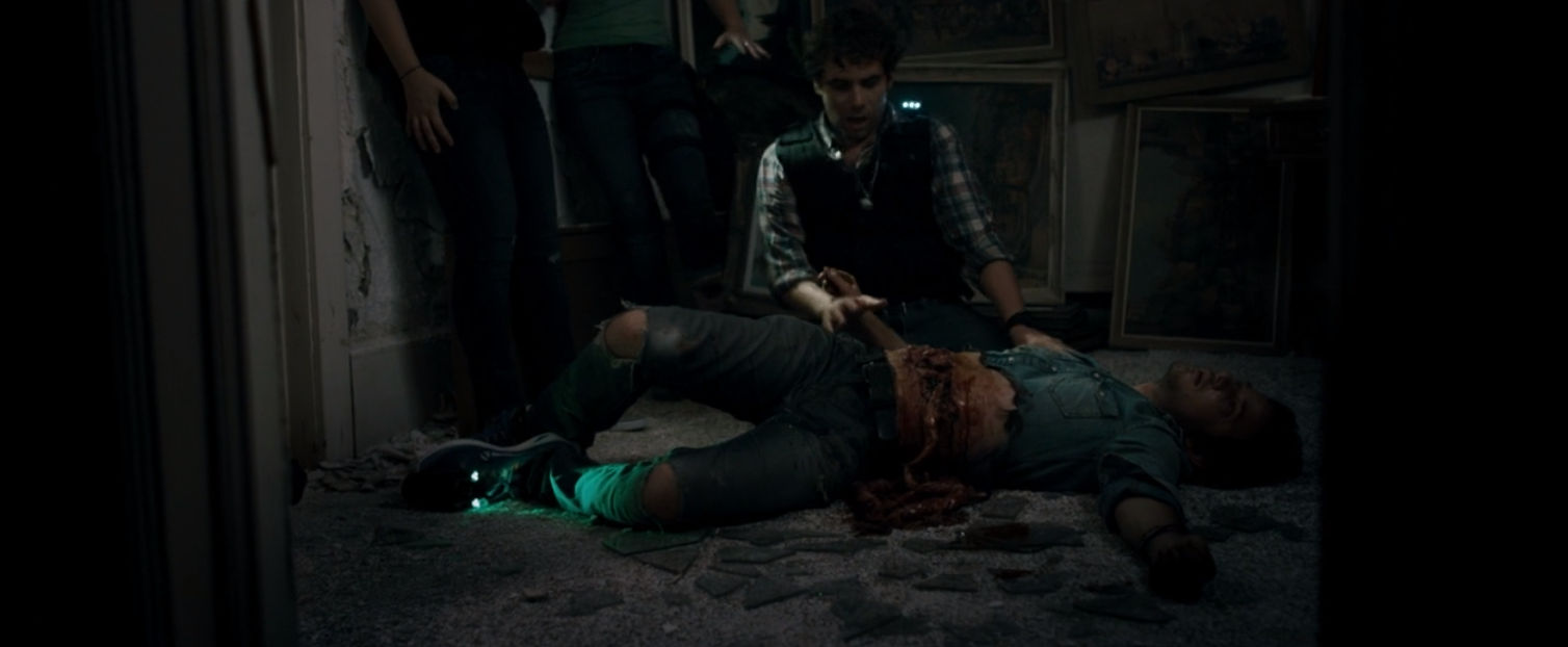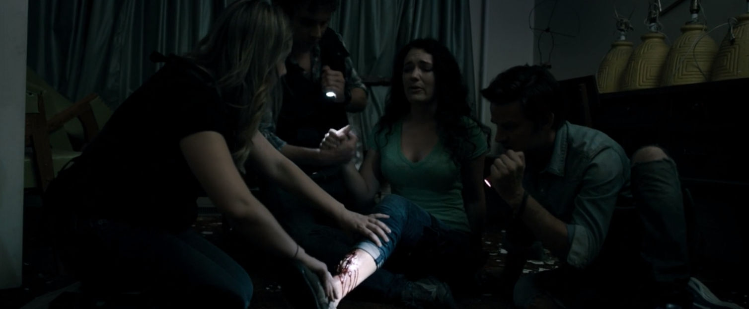 The second thing that bugged the crap out of me was two scenes with injuries. The character Zoe breaks her Tibia and another character says let me reset it and pushes the splintered bone back under the skin. Then they wrap some gauze around it and Jake asks her do you think you can walk? Really? She had a bone sticking out of her leg and you think a little gauze is going to help her walk on it? Well later on in the movie she does walk on it, blows my mind.